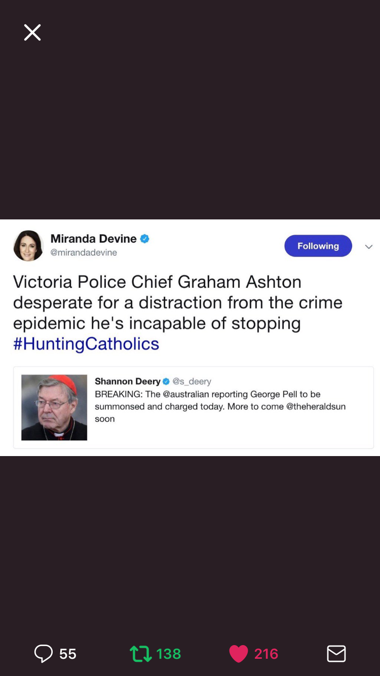 The Australia-wide Royal Commission into Institutional Responses to Child Sexual Abuse delivered its final recommendations in December 2017. More than 60,000 abuse survivors came forward. The suicide rate amongst males in Ballarat (Pell’s home city) is twice that of Melbourne. But still, some in the Catholic Church believe that their religion is being unfairly targeted. This is the organisation where all serving archbishops told the royal commission they would not report to police a colleague who admitted in the confessional to child rape.